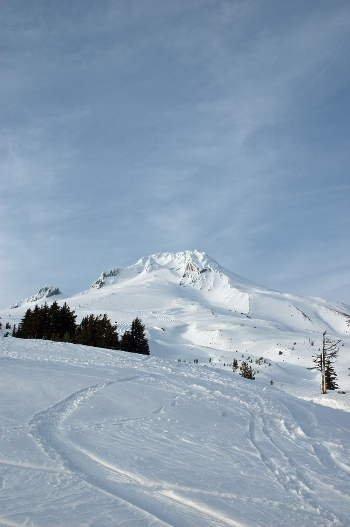 Mount Hood, in early spring or late fall, when it’s bright and white with new snow and sharply defined in the sunlight against an incredible blue sky, is one of the most beautiful sights to see. It’s not something you can adequately describe with words or that a photograph even begins to capture.