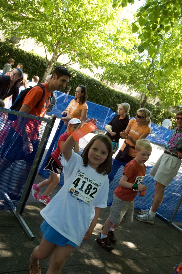 The 2012 Lake Run. A glorious day for a run today: sunny, warm but breezy, crystal clear. I met a personal goal and resolution of mine to break 24 minutes again in the 5k. The kids loved the inflatable slide, and Madeline even partook of the running aspect herself this year, joining in the Kid’s Dash.