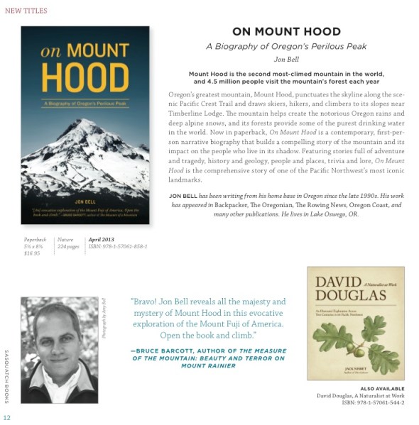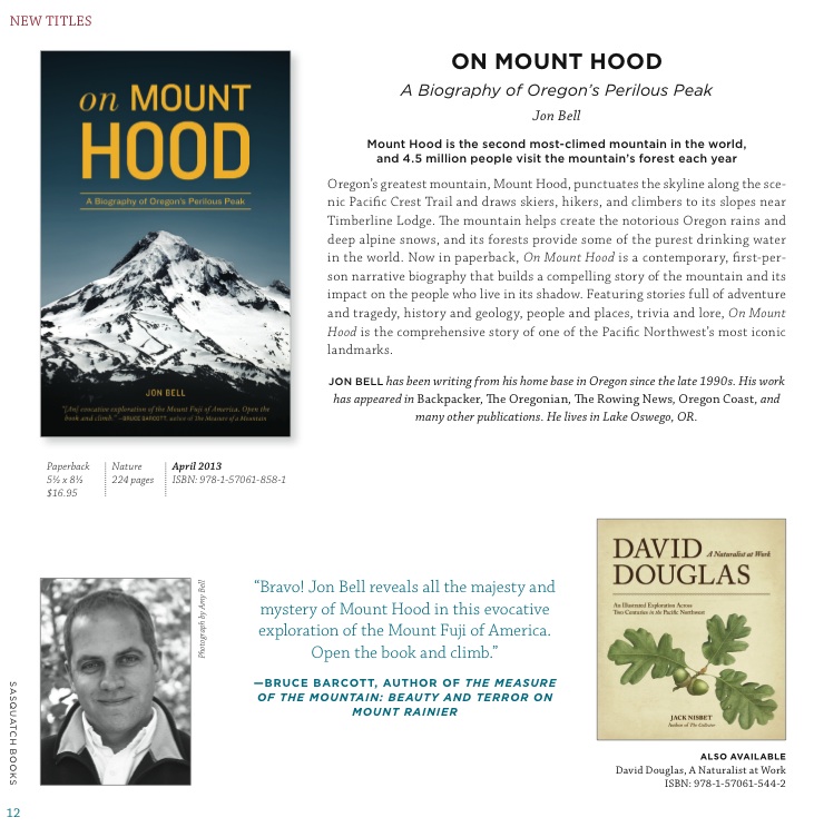 And so today, just a quick note and a very early save the date: the paperback version of On Mount Hood: A Biography of Oregon’s Perilous Peak will be released by Sasquatch Books on Tuesday, April 23, 2013. The next night, a celebration kickoff at Powell’s City of Books — and not the Hawthorn store, which was great for the launch of the book in 2011, but the big daddy at 1005 W. Burnside in Portland.