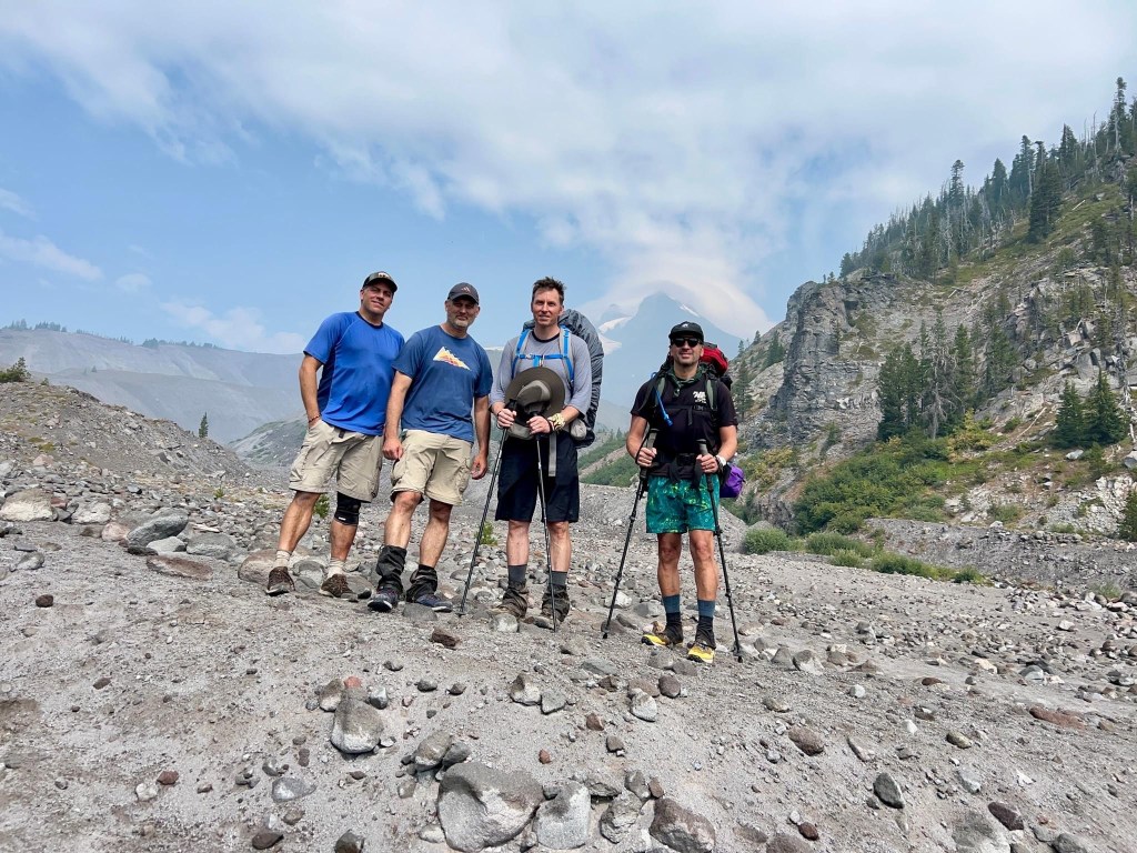 But it didn’t. All six of us – a cadre of friends who’ve shared years of outdoor adventures together – made it down, albeit slowly, across the creek and back up a steep, long slog to the Cloud Cap Saddle Campground on the northeast side of Hood where we’d left a car four days and 41 miles earlier.