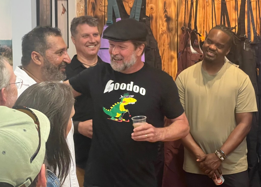 Hood skier and writer Asit Rathod (left), photographer Richard Hallman(center) and writer and editor Ben Jacklet (in the Hoodoo shirt) at the release of “11,239” this spring.