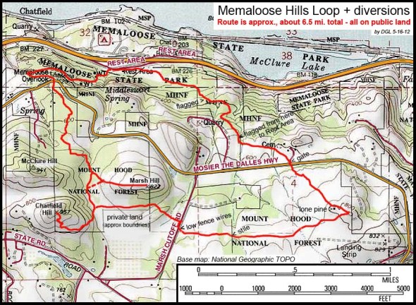 Today, resident Mount Adams expert and photographer Darryl Lloyd sent out an interesting map of a unique and unofficial wildflower trail out in the Columbia River Gorge in between Hood River and the Dalles. I’ve never done it, myself, but it sounds pretty nice — and it’s got at least one incredible view of Mount Hood along it’s 6.5-mile way. Thanks for sharing Darryl!