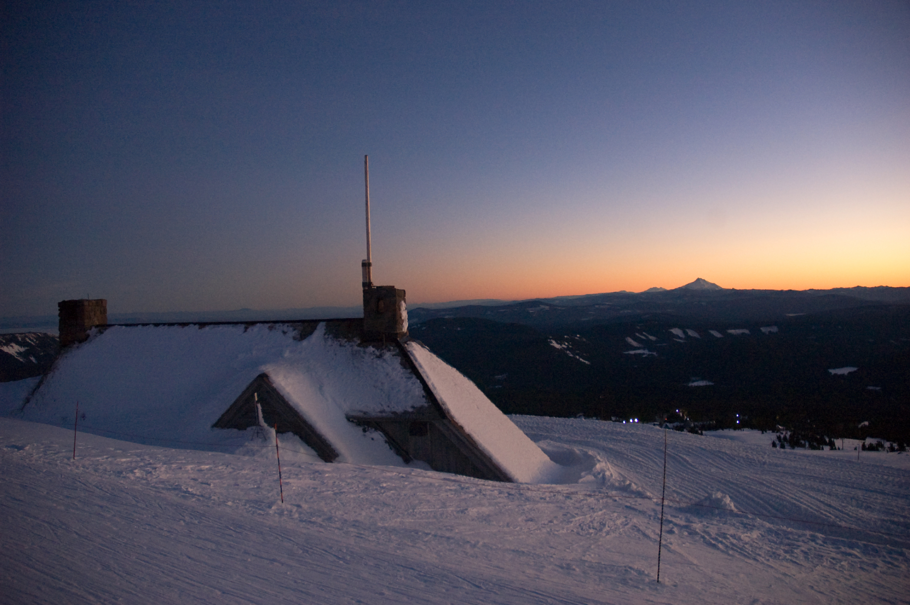 We skied all afternoon in this bliss at Timberline, high above the inversion clouds that chilled and socked in Portland for days. But while nearly everyone else on the mountain headed back down into the gray at the end of the day, we got to stay. And not just at Timberline Lodge, which would have been grand itself, but at someplace a little more removed, a little higher up, a touch more intimate.