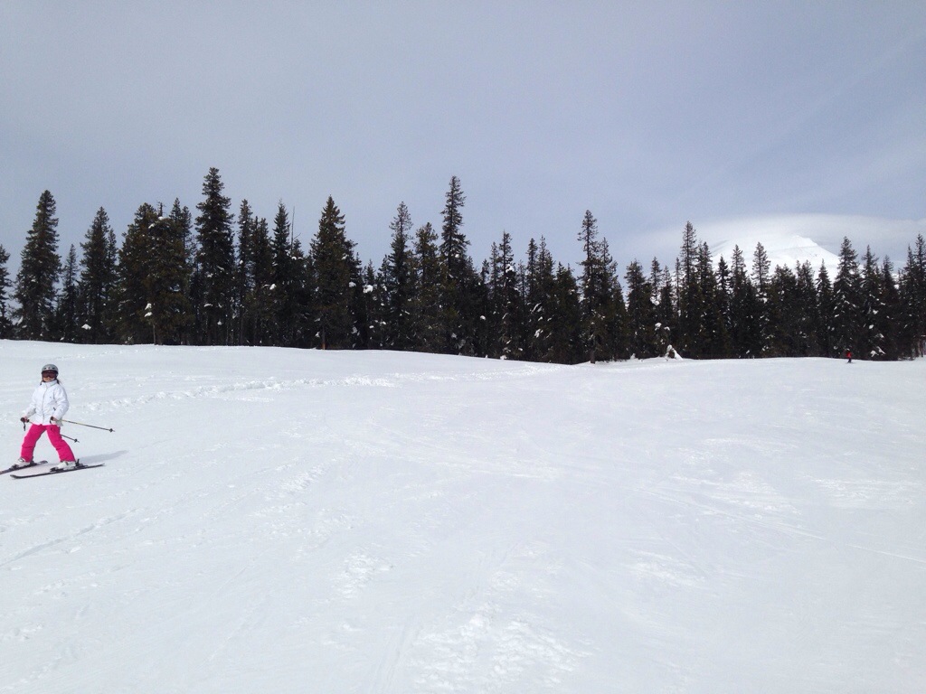 Madeline cruising down Vista at Mt. Hood Meadows, a favorite run on the mountain.