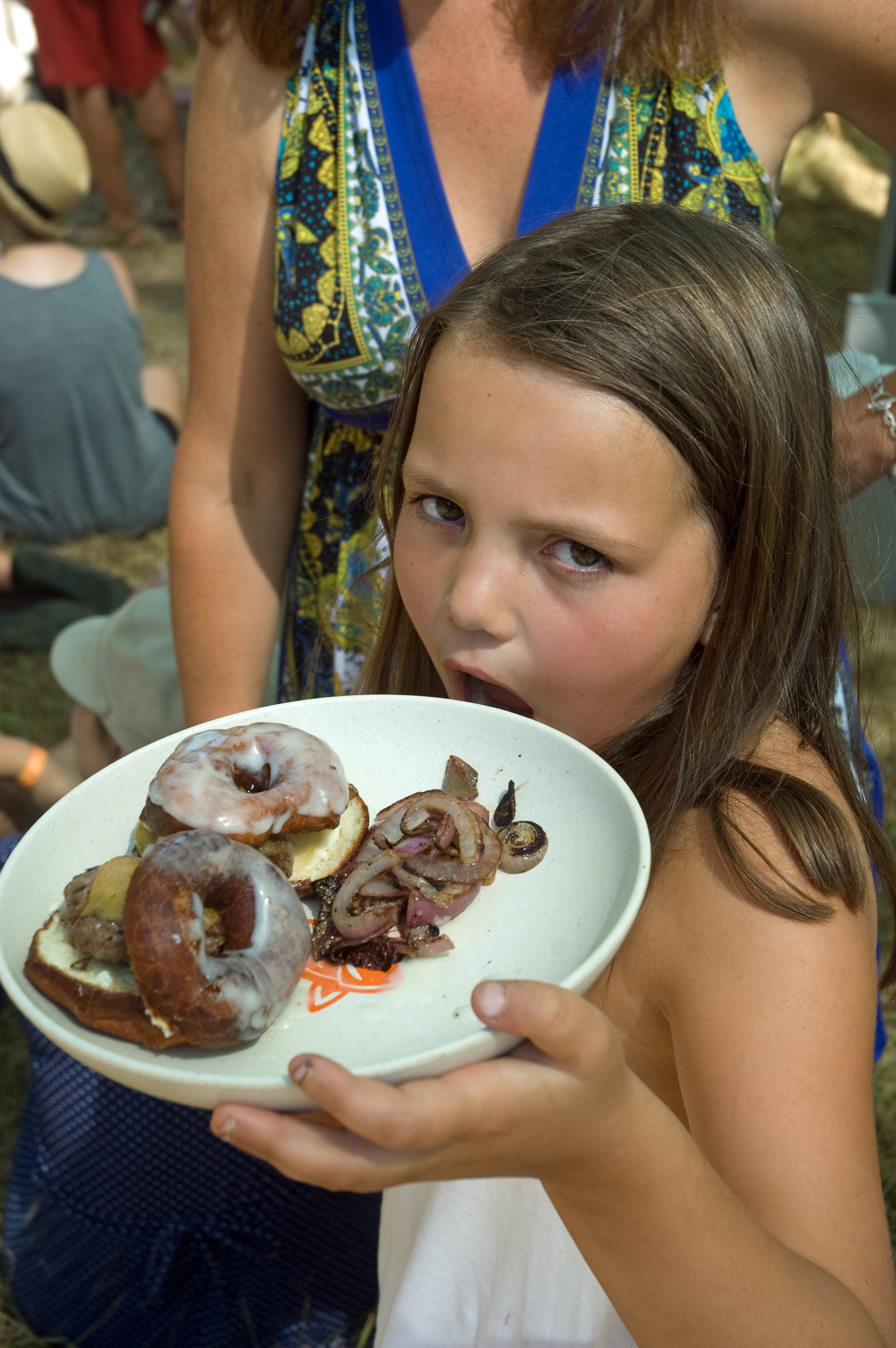 We had incredible burgers from Kuza Burger — so good that we went back twice over the weekend — but we couldn’t resist giving the donut sliders from, I believe, Red Tomatoes, a try. Not as good as Kuza, but how to resist a cheeseburger served on a fresh-made donut?